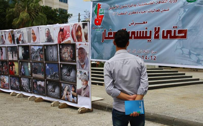 افتتحت وزارة الثقافة الفلسطينية، بالتعاون مع دائرة شؤون اللاجئين الفلسطينيين، اليوم الثلاثاء، معرضًا للصور بعنوان "حتى لا ينسى الصغار"، على أرض ساحة الجندي المجهول وسط مدينة غزة. وقال الوكيل المساعد لوزارة الثقافة مصطفى الصواف: "إننا في الذكرى السابعة والستون لنكبة فلسطين ندعو العالم لإيقاف الظلم التاريخي الذي وقع على الشعب الفلسطيني وإنهاء كافة فصول المعاناة التي يعيشها شعبنا من حرمان وألم وتشريد التي نتجت عن اغتصاب وطنه". وأضاف: "إن إحياء ذكرى النكبة في كل عام بهذا الزخم والاهتمام الشعبي يؤكد أن الشعب الفلسطيني عصي على النسيان ونجح في إسقاط كل محاولات الاحتلال ومخططاته لتزييف الوعي الوطني الفلسطيني وعدم الرضوخ للأمر الواقع". وأشار الصواف إلى أن المعرض يأتي ضمن سلسلة الفعاليات والأنشطة التي تعقدها وزارة الثقافة لإحياء ذكرى النكبة، مؤكداً أن الوزارة حرصت على أن يكون المعرض مميز ويحمل فكرة جديدة تجمع بين الماضي والحاضر في قالب فني مميز ويرسم صورة الأمل المشرق في العودة إلى أرض الآباء والأجداد واستعادة فلسطين من بحرها إلى نهرها. ولفت إلى أن صورة الشيخ الذي عاصر النكبة تعكس حجم الفاجعة والألم التي حلت بالشعب الفلسطيني وبجانبها صورة الطفل الذي يعيش على حلم العودة إلى أرض آباءه وأجداده التي لم تراها عينه تحمل رسالة بالغة القوة بأن الصغار لن يسنوا حقهم. وأردف قائلًا: "إن المعرض يأخذ الزائر في رحلة إلى أرض فلسطين ما قبل النكبة وكيف كانت تنبض بالحياة في مختلف المجالات وأن فلسطين لم تكن أرضاً بلا شعب كما يروج الاحتلال". يشار إلى أن المعرض يستمر لمدة ثلاثة أيام متواصلة في نفس المكان ويضم بين جنباته عدد كبير من الصور الفوتوغرافية التي تجسد حياة الفلسطينيين ما قبل النكبة كمواسم جني البرتقال في يافا، ومواسم قطف الزيتون في صفد، بالإضافة إلى صور التهجير والجرائم والمجازر التي ارتكبتها العصابات الصهيونية بحق الشعب الفلسطيني. [img=052015/view_1431433669.jpg]ضع تعليق الصورة هنا[/img] [img=052015/view_1431433673.jpg]ضع تعليق الصورة هنا[/img] [img=052015/view_1431433678.jpg]ضع تعليق الصورة هنا[/img] [img=052015/view_1431433682.jpg]ضع تعليق الصورة هنا[/img]