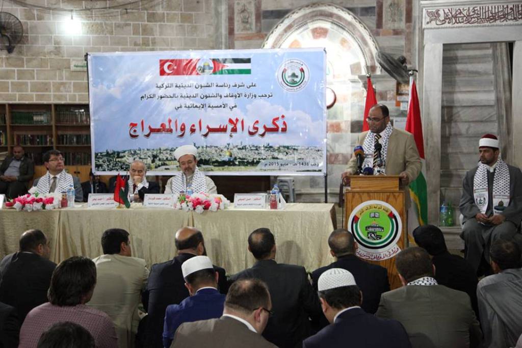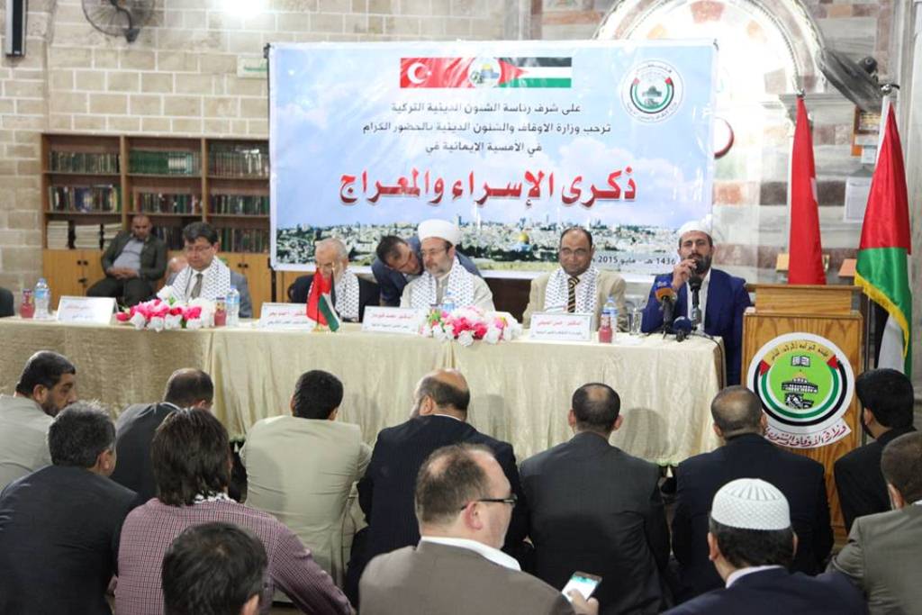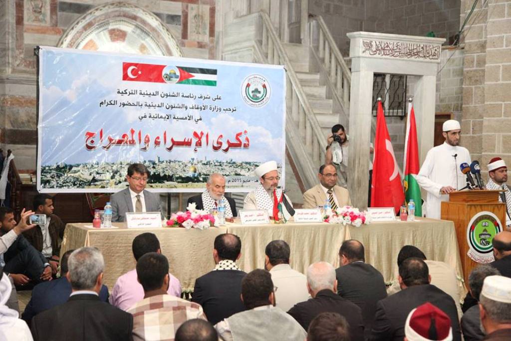 نظمت وزارة الأوقاف والشؤون الدينية، الأحد، أمسية ايمانية في ذكرى الإسراء والمعراج بمسجد العمري وسط مدينة غزة واحتفالًا بزيارة رئيس الشؤون الدينية التركية محمد قورماز والسفير التركي لدي فلسطين مصطفى سارنيتش لقطاع غزة. [img=052015/view_1431936098.jpg]ضع تعليق الصورة هنا[/img] وألقى ضيف الاحتفال رئيس الشؤون الدينية التركية محمد قورماز كلمة قال فيها: "إن زيارته إلى قطاع غزة جاءت بعد سنوات من الشوق لفلسطين وإن الوفد التركي جاء لتقبيل أيدي المرابطين في القطاع المحاصر". واضاف "جئنا إلى غزة نحمل إليكم سلام والمحبة من إخوانكم وأهاليكم من الشعب التركي وبأن تحرير بيت المقدس وزوال الاحتلال قريب ان شاء الله". [img=052015/view_1431936126.jpg]ضع تعليق الصورة هنا[/img] وأشار قورماز إلى أن القيادة التركية تقف كاملاً مع الشعب الفلسطيني وأن الحصار الذي تتعرض له غزة يؤلم تركيا حكومة وشعباً، فلا تأتي مناسبة ألا ونستهجن ديمقراطية العالم الحر وسكوته عن ظلم غزة. كما قال. وبين أن تركيا ستبذل كل ما بوسعها لفك الحصار عن غزة والتخفيف من معاناة الفلسطينيين. [img=052015/view_1431936123.jpg]ضع تعليق الصورة هنا[/img] ووصل وفد تركي ضم رئيس الشؤون الدينية التركي محمد قورماز وسفير تركيا لدى فلسطين مصطفى سارنيتش في زيارة تاريخية إلى قطاع غزة صباح الأحد عبر معبر بيت حانون "إيرز" شمال القطاع. بدوره، قال رئيس المجلس التشريعي بالإنابة أحمد بحر خلال كلمة له إن أهل غزة يفتخرون اليوم بتركيا حكومة وشعباً لمواقفها البطولية في نصرة الشعب الفلسطيني؛ لذا فهي حاضرة في قلب كل فلسطيني. وأضاف "سنمضي على الدرب مع تركيا ورئيسها رجب طيب اردوغان الذي يدعم القضية الفلسطينية"، مشدداً أن جميع المؤامرات التي تحاك ضد قطاع غزة ستبوء بالفشل. وبين بحر ان مدينة القدس تتعرض لهجمة شرسة من الاحتلال الاسرائيلي بشكل يومي من اعتداءات المستوطنين واقتحامهم للمسجد الاقصى، مؤكداً أن نساء فلسطين يدافعن عن الأقصى بكل قوة لحمايته من دنس المستوطنين. وأوضح أن قضية القدس ليست لفلسطين وحدها وإنما لكل المسلمين في العالم، ومهما حاول ناتنياهو ان ينزع الصفة الاسلامية من القدس فلن ينجح في ذلك لأنها في ضمير الأمة العربية. واستهجن بحر قرار المحكمة المصرية في اصدار حكم الإعدام بحق شهداء وأسرى فلسطينيين، مؤكداً أن هذه القرارات سياسة ولا تعتمد على معلومات أو أي حقيقة. وطالب مصر أن تعيد النظر في الأحكام الظالمة التي صدرت بحق شهداء وأسرى الشعب الفلسطيني. وفي كلمة له قال وكيل وزارة الاوقاف د. حسن الصيفي :" نلتقي اليوم في ذكرى الإسراء والمعراج في ظل زيارة كريمة من معالي الوزير رئيس الشؤون الدينية التركية د. محمد قورماز", والذي أكرمه الله بزيارة القدس والقاء خطبة يوم الجمعة بالمسجد الأقصى", مشيرًا إلى الصعود بالقرآن والوصول الى النصر والتحرير سيكون من فلسطين والقدس. [img=052015/view_1431936106.jpg]ضع تعليق الصورة هنا[/img] وأضاف :" كل فلسطين وكل الأمة الإسلامية تقول لتركيا العظيمة بلد الخلافة العثمانية العتيدة نيابة عن كل الأمة وبيت المقدس: نقول لكم كل المساجد طُهرت ولا زال الأقصى المبارك يُدنس", متسائلاً متى ستمتشق الأمة سيوفها وتركب خيولها وتتوجه لتحرير بيت المقدس. [img=052015/view_1431936100.jpg]ضع تعليق الصورة هنا[/img] وأكد د. الصيفي أن أهل فلسطين سيقتلون اليهود بأظفارهم وصدورهم وعقولهم وحقهم على هذه الأرض حتى وإن لم نمتلك السلاح لأننا أصحاب حق, مشيدًا في الوقت ذاته بجهود تركيا رئاسة وحكومة وشعباً في دعم وتعزيز صمود أبناء شعبنا الفلسطيني الصابر والمرابط على هذه الأرض.