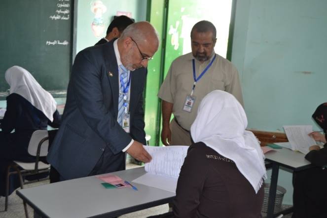 أكد وكيل وزارة التربية والتعليم العالي "زياد ثابت" بأن وزارته تسعى بكل طواقمها الفنية والإدارية لتهيئة الأجواء النفسية وتوفير سبل الراحة لطلاب الثانوية العامة. جاء ذلك خلال جولة وكيل الوزارة لعدد من لجان امتحانات الثانوية العامة في مديرية التربية والتعليم بالمحافظة الوسطى، ورافقه فيها رئيس اللجنة الوزارية في الوسطى علي خليفة ومدير التعليم علي أبو حسب الله والنائبين الفني والإداري ورئيس قسم العلاقات العامة. ودعا ثابت الطلبة إلى المزيد من الجد والاجتهاد لتحصيل أعلى الدرجات، مؤكداً خلال جولته على ضرورة الالتزام بالتعليمات والضوابط المنظمة لسير الامتحانات حتى تتم على أكمل وجه. وأشاد وكيل الوزارة بالهدوء والنظام في قاعات لجان الثانوية العامة بالمحافظة الوسطى، مثمناً دور مديرية التربية والتعليم في متابعة سير اللجان. وتفقد وكيل الوزارة ثابت لجان ممدوح صيدم الثانوية " أ + ب " للبنات، فرع العلوم الإنسانية و لجنة دير البلح الأساسية الفرع العلمي. [img=062015/view_1433409734.jpg]ضع تعليق الصورة هنا[/img] [img=062015/view_1433409736.jpg]ضع تعليق الصورة هنا[/img] [img=062015/view_1433409738.jpg]ضع تعليق الصورة هنا[/img] [img=062015/view_1433409739.jpg]ضع تعليق الصورة هنا[/img] [img=062015/view_1433409742.jpg]ضع تعليق الصورة هنا[/img] [img=062015/view_1433409748.jpg]ضع تعليق الصورة هنا[/img]