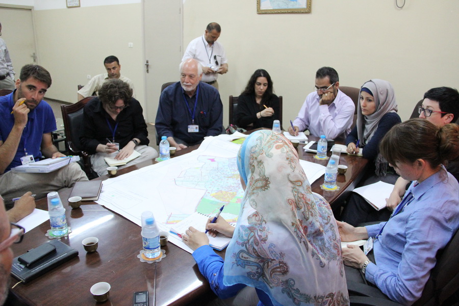 استقبل رئيس بلدية رفح صبحي أبو رضوان ,في مكتبه بدار البلدية صباح اليوم, وفدا دوليا من برنامج الأمم المتحدة الإنمائي "undp"؛ للاطلاع على التصورات والمخططات المستقبلية لمدينة رفح , بحضور مدير دائرة التخطيط الحضري صالح جرغون. ورحب أبو رضوان بالوفد الزائر, مشيدا بأداء الطواقم التابعة لبرنامج الأمم المتحدة في كافة المجالات النشطة بقطاع غزة والتي كان أخرها برنامج إزالة الأنقاض بطريقة آمنة . وأوضح أن البلدية أنجزت كافة المخططات التفصيلية لأحياء محافظة رفح, بما يضمن توفير مرافق عامة في كافة الأحياء وتوفير مراكز خدمات تعليمية وصحية كافية وموزعة حسب الكثافة السكانية للمحافظة . فيما قدم جرغون شرحا فنيا وهندسيا للمخططات الموضوعة للارتقاء بمحافظة رفح , مشيرا إلى سعي البلدية لتطوير المناطق الخضراء وزيادة عدد المرافق العامة؛ بما يتوائم مع الزيادة السكانية برفح. وشكر مسئول فريق التخطيط الدولي للمساعدة في وضع تصور تخطيطي أمثل لقطاع غزة السيد جيرمي دوكنز بلدية رفح على استعدادها وتحضيرها للارتقاء بكافة القطاعات الخدماتية. [img=062015/view_1433760775.jpg]ضع تعليق الصورة هنا[/img] [img=062015/view_1433760785.jpg]ضع تعليق الصورة هنا[/img]