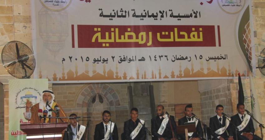 نظمت رابطة علماء فلسطين أمسية إيمانية إنشادية بعنوان "نفحات رمضانية" في ساحة المسجد العمري الكبير بمدينة غزة.