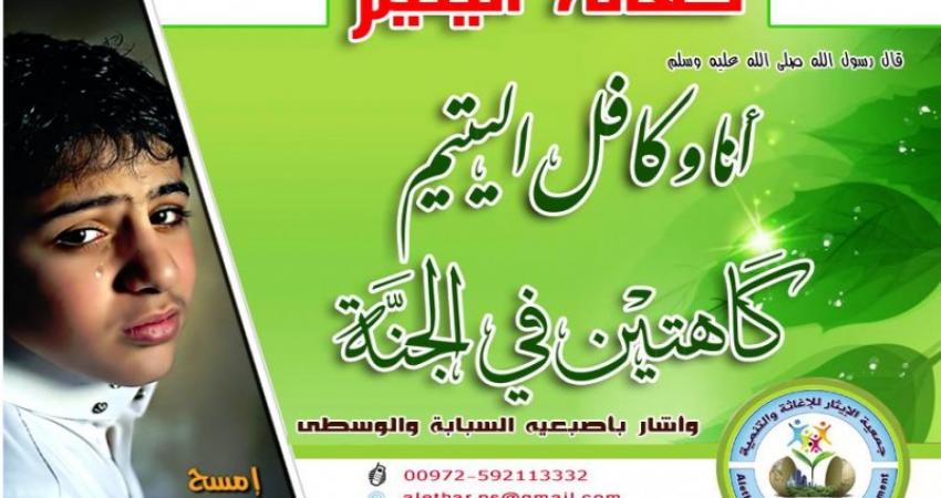 اختتمت جمعية الإيثار للإغاثة والتنمية شرق خان يونس، في قطاع غزة أمس الأحد، توزيع كفالات الأيتام عن شهري 5 و 6 من العام الجاري، وذلك بتمويل كريم من الجمعية الكندية لإغاثة المنكوبين  وأهل الخير في المملكة العربية السعودية، حيث يستفيد من الجمعية 80 يتيم شهريًا.