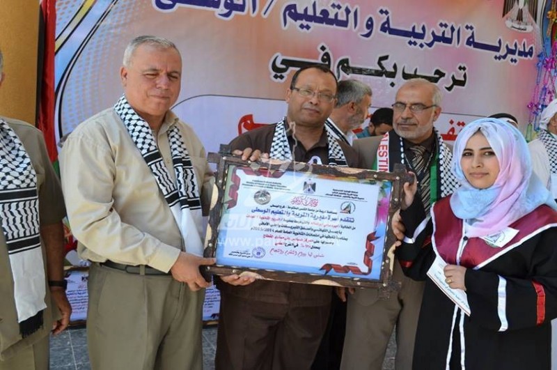 كرمت وزارة التربية والتعليم العالي ومديرية تعليم الوسطي 35 من أوائل الطلبة المتفوقين في الثانوية العامة علي مستوي الوطن وقطاع غزة والمحافظة الوسطي، وذلك في مقر مديرية التربية و التعليم بالمحافظة.