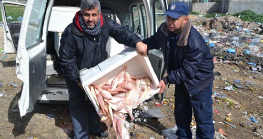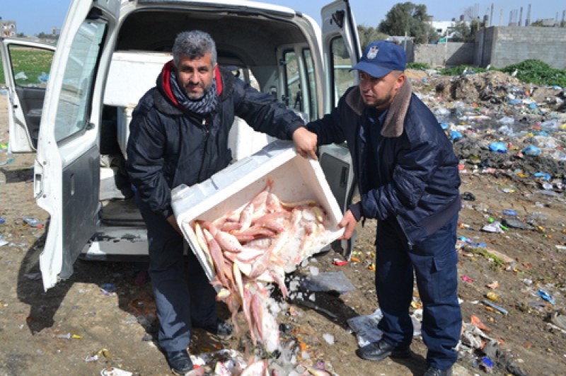 ضبط قسم حماية المستهلك التابع لوزارة الاقتصاد الوطني فرع رفح جنوب قطاع غزة بالتعاون مع مباحث التموين كمية كبيرة من السمك الفاسد غير الصالح للأكل.