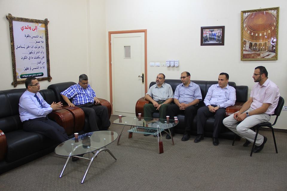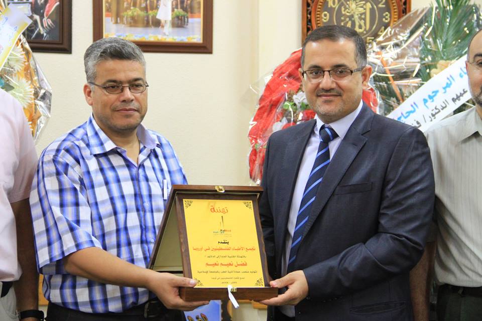 زار وفد من تجمع الأطباء الفلسطينيين في أوروبا الجامعة الإسلامية في قطاع غزة ،حيث ضم الوفد الدكتور محمد أبو ندى- رئيس مكتب غزة لتجمع الأطباء الفلسطينيين في أوروبا، وكان في استقبال الوفد عادل عوض الله رئيس الجامعة الإسلامية، ماجد الفرا نائب الرئيس للشئون الإدارية، وفضل نعيم عميد كلية الطب.