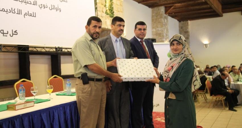 وقالت العثامنة: إنه بهذا التكريم تزداد المسؤولية علينا لذلك عقدنا العزم رغم الحرب والحصار على المضي قدماً في مسيرة العطاء والتفوق من أجل وطننا الحبيب.