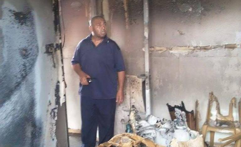 صور: تماس كهربي يحرق كرفانا بخانيونس