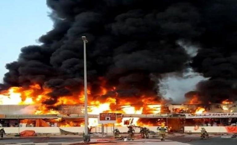 الحريق الضخم في عجمان يلتهم السوق الإيراني